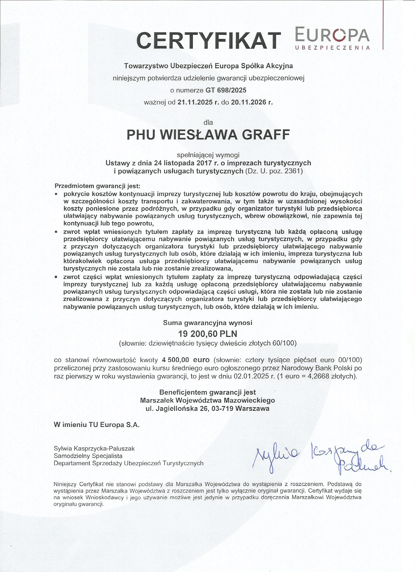 GT 698/2025 ważnej od 21.11.2025 do 20.11.2026